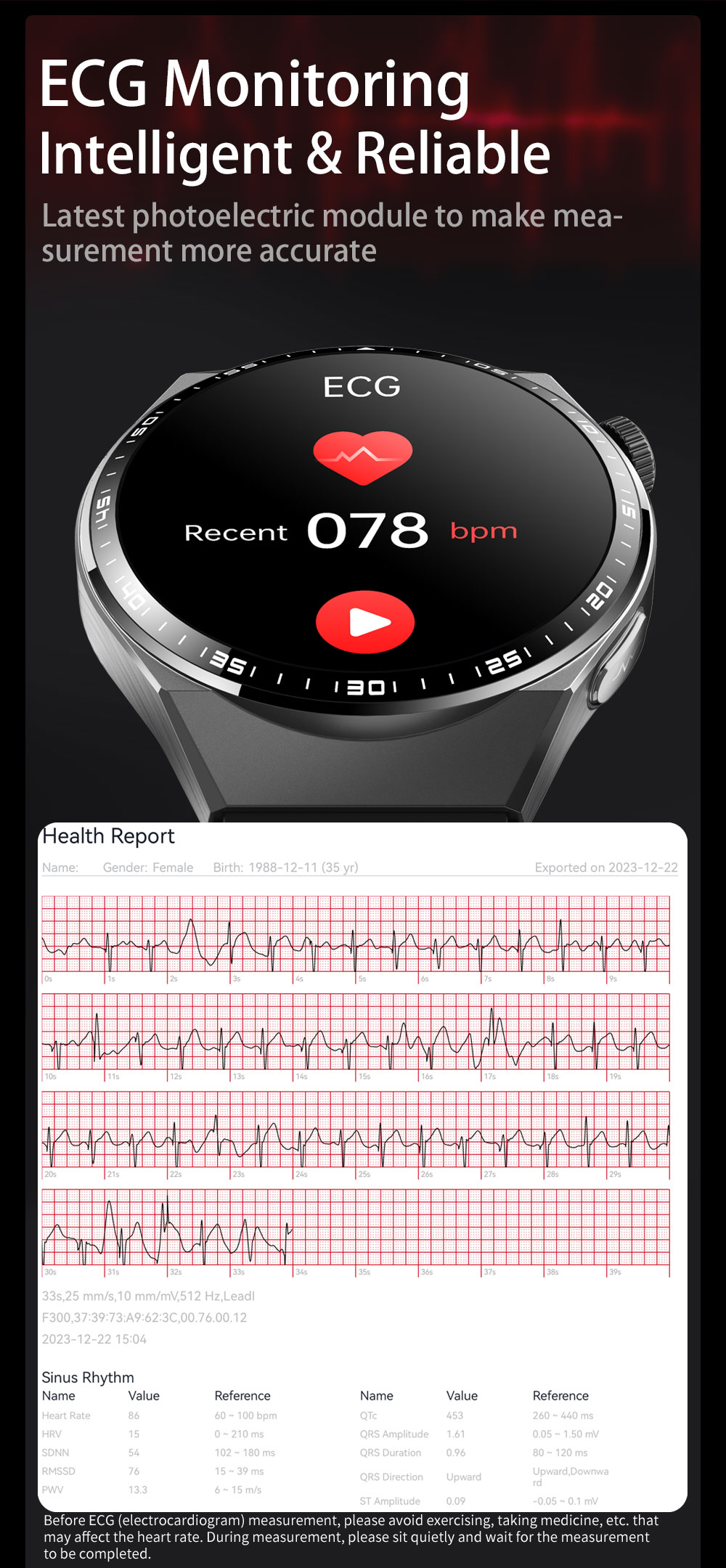 The CareMax smartwatch leverages advanced chip sensors and unique health algorithms to provide accurate ECG and heart rate readings in just 20 seconds.