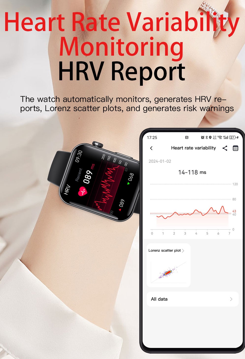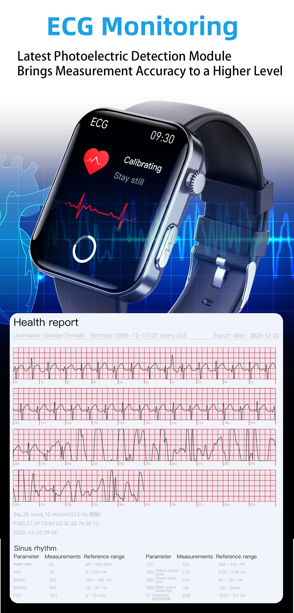 PulseMax leverages advanced ECG sensors and unique health algorithms, allowing you to view ECG and heart rate data by simply placing your hand on the metal detection surface of the watch for about 20 seconds.