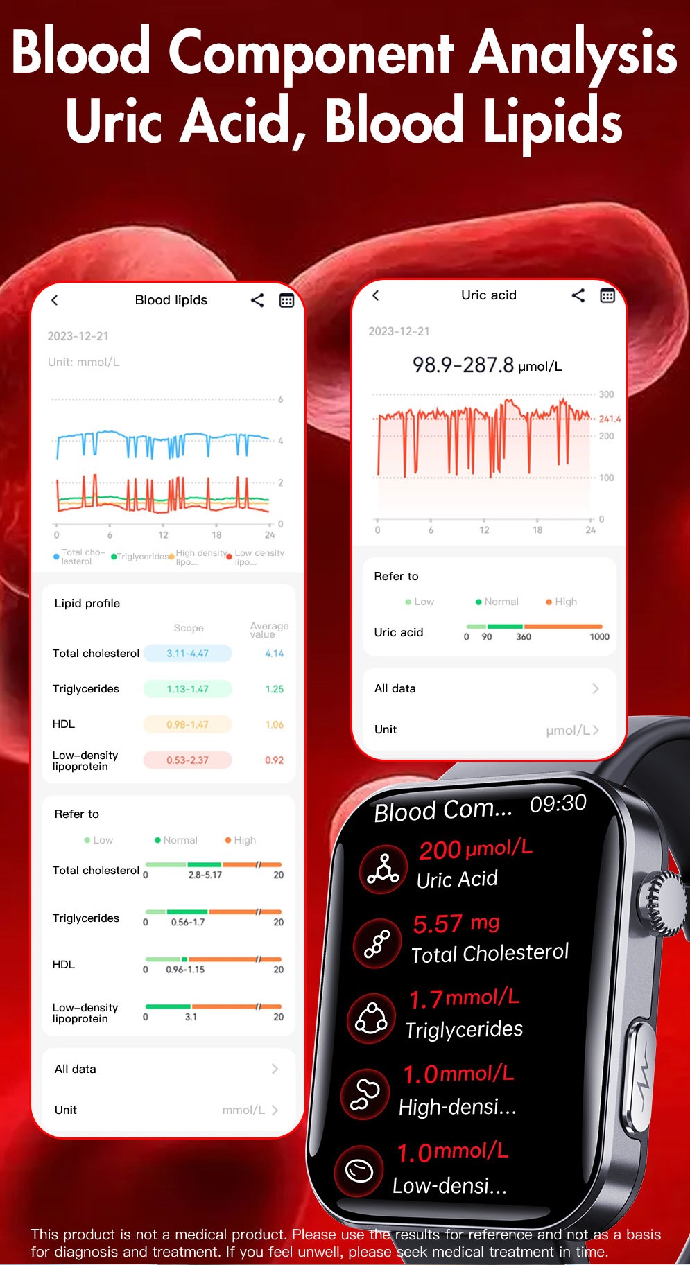 PulseMax utilizes laser detection technology to effectively assess uric acid (umol/L) and blood lipid (mmol/L) levels, aiding in the early detection and treatment of conditions like gout and arthritis;