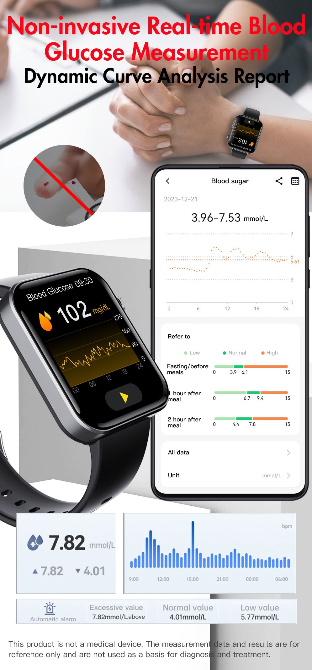 The PulseMax EF300 Smartwatch, uses the advanced AI algorithms and precise sensors of its predecessor while enhancing glucose accuracy and adding life-saving features such as fall detection and emergency calling. With further improved performance, it provides 24/7 protection for your health and well-being!