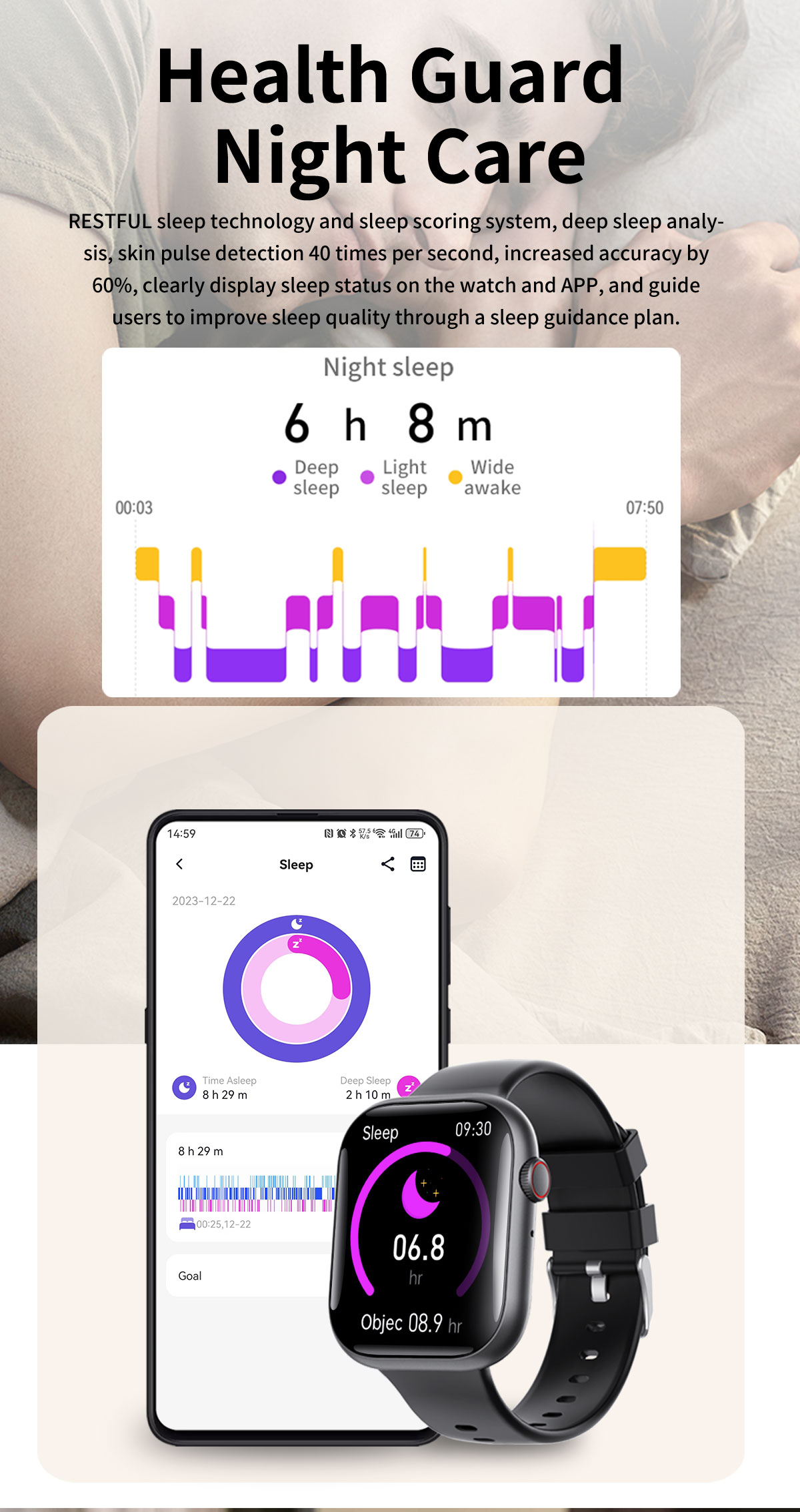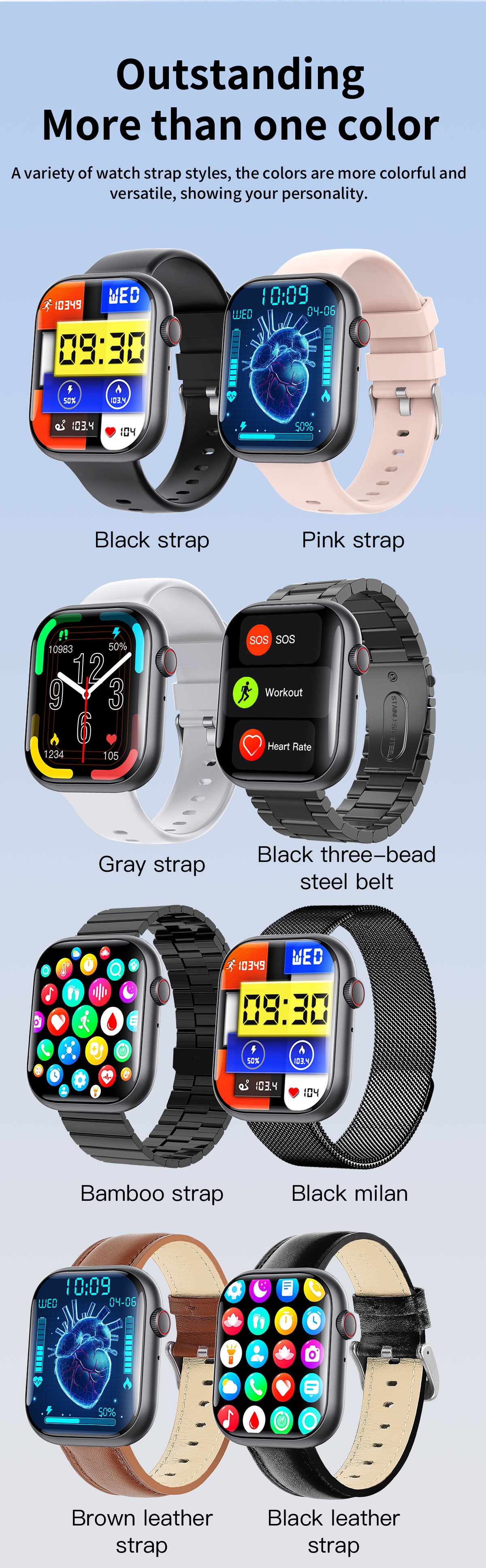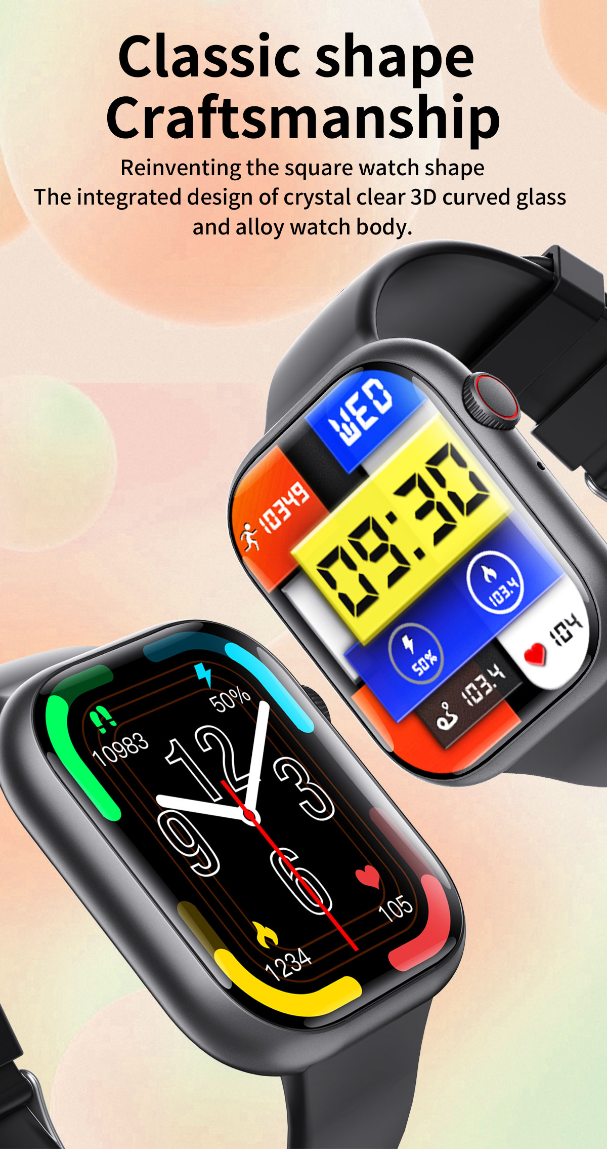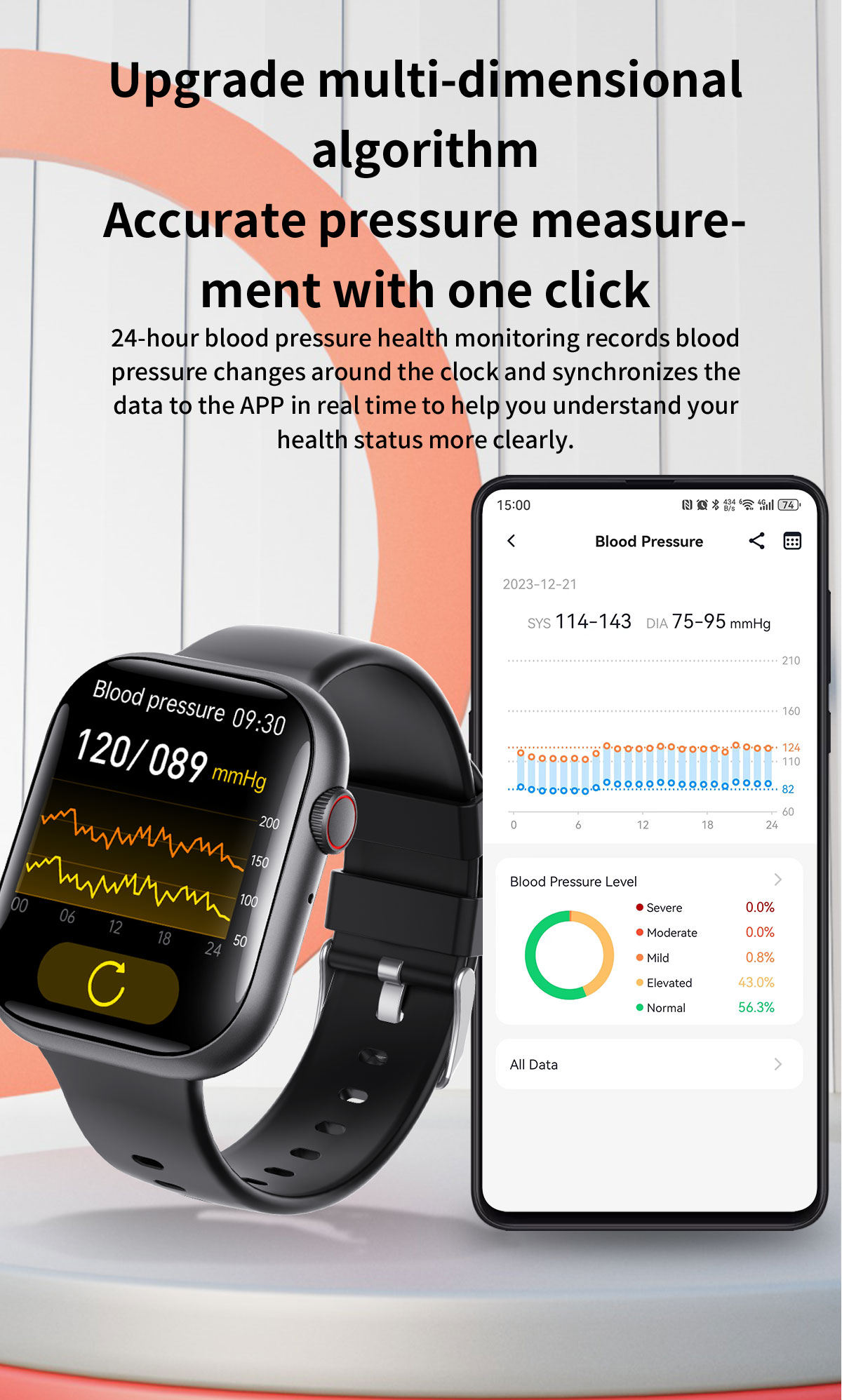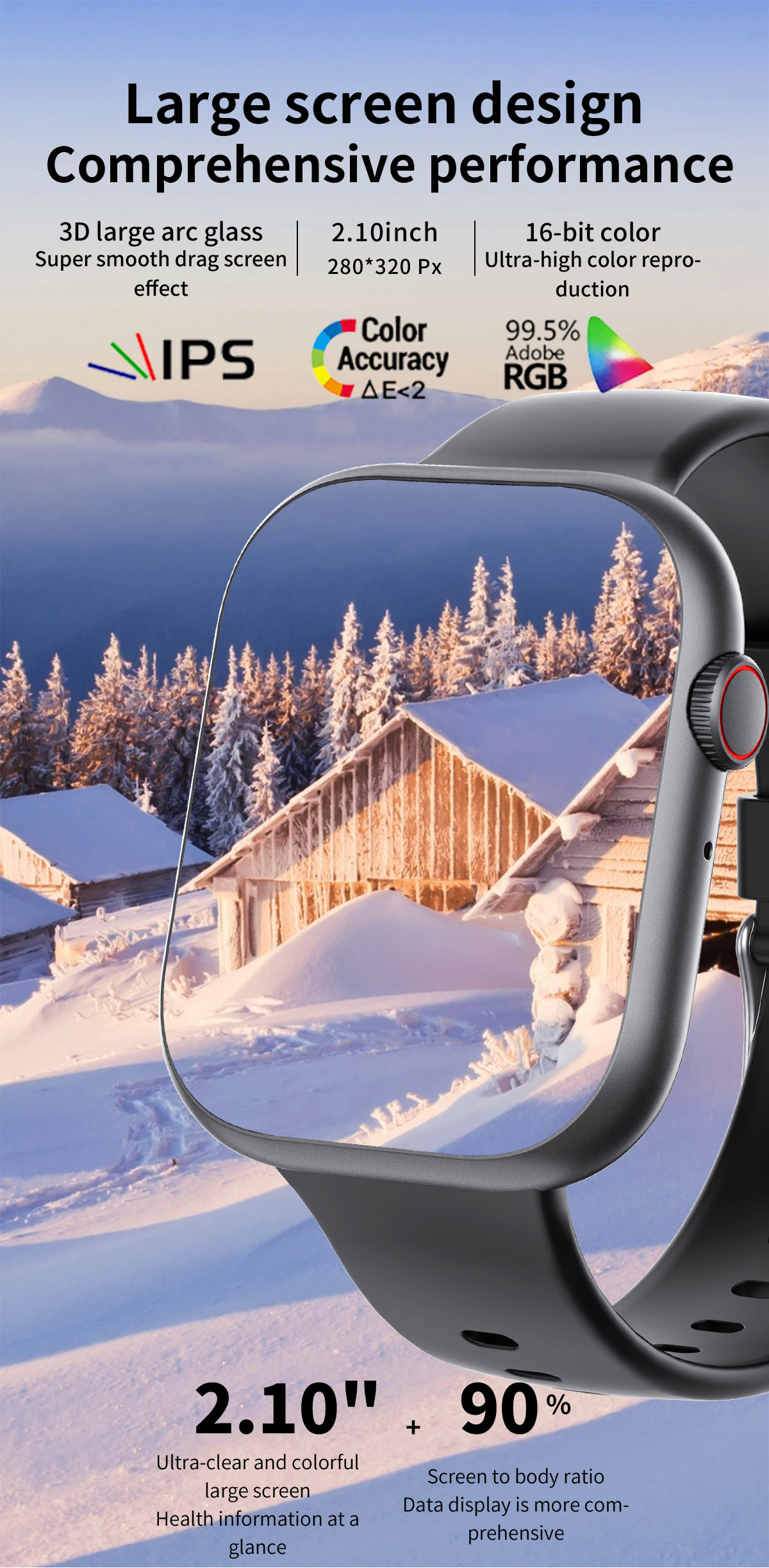 + Free Shipping2.1″ Large Super Rentina Screen | 5th. Gen Non-invasive Blood Sugar | Blood Components (uric acid, blood lipids) | Body Composition | SOS | HRV Report | Red Light Blood Oxygen | Scientific Sleep Monitoring | Pressure | MET | SOS | Voice Call | Sports Modes |