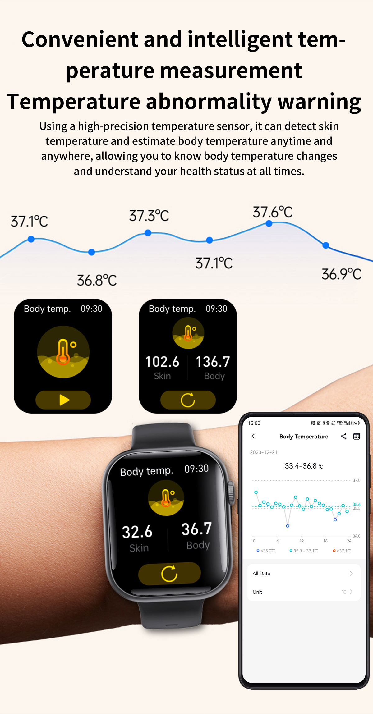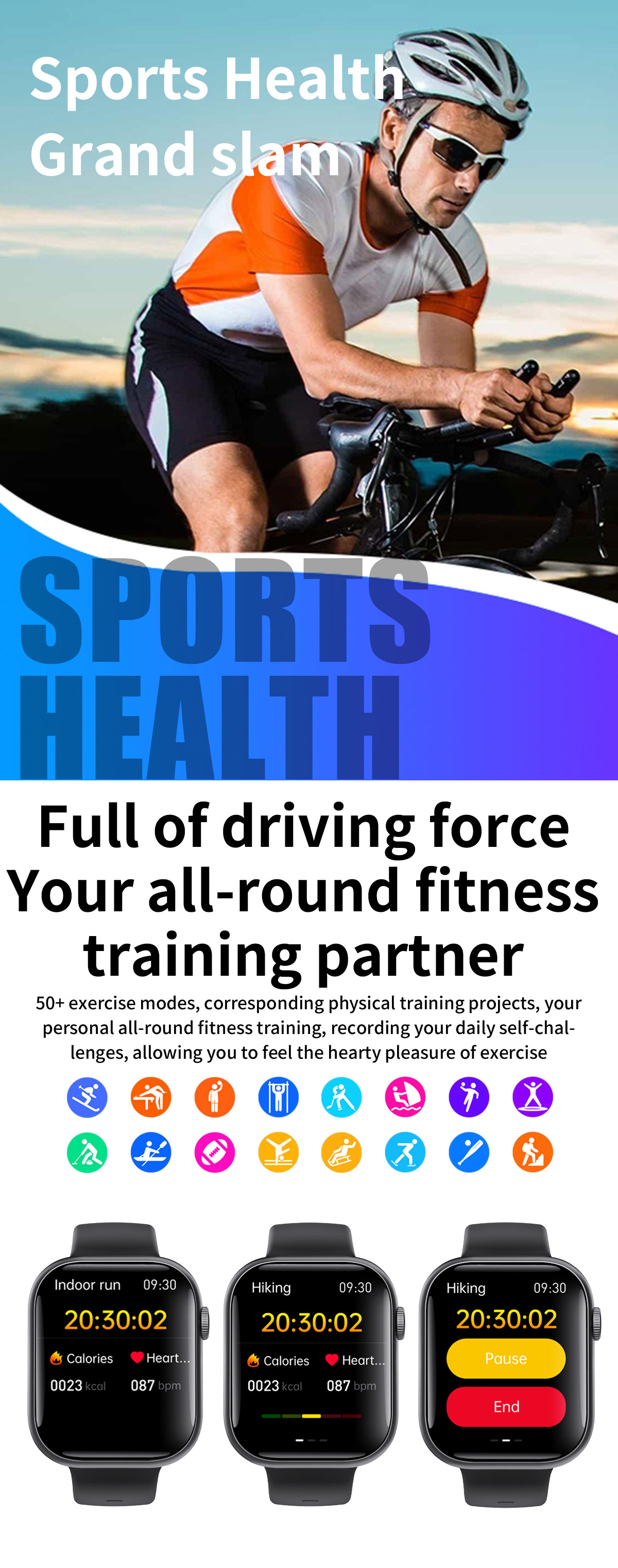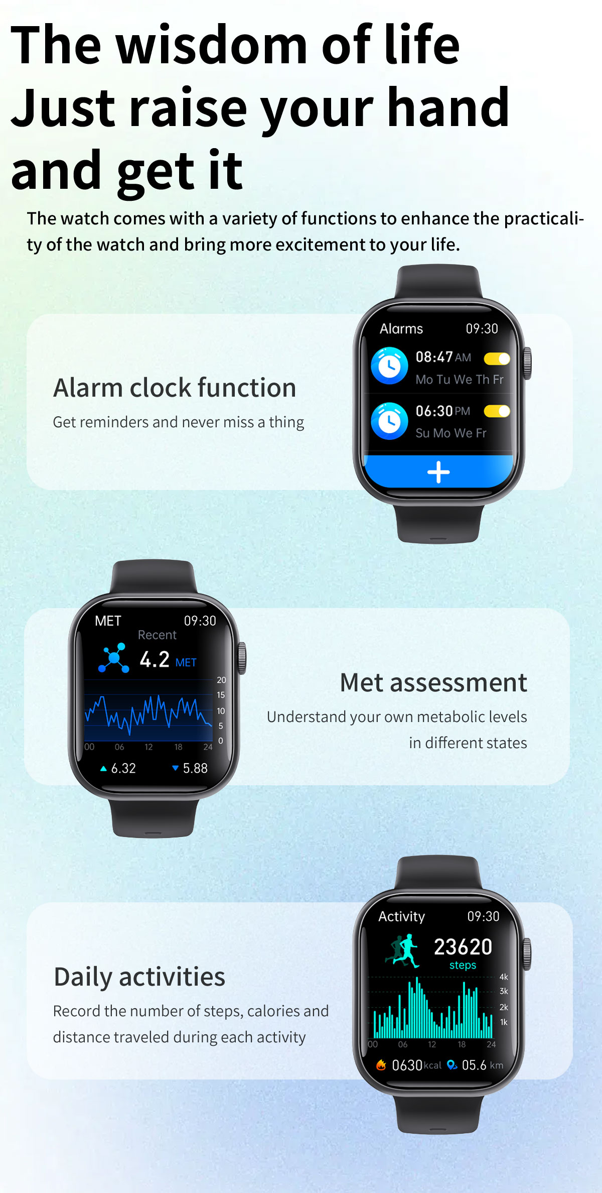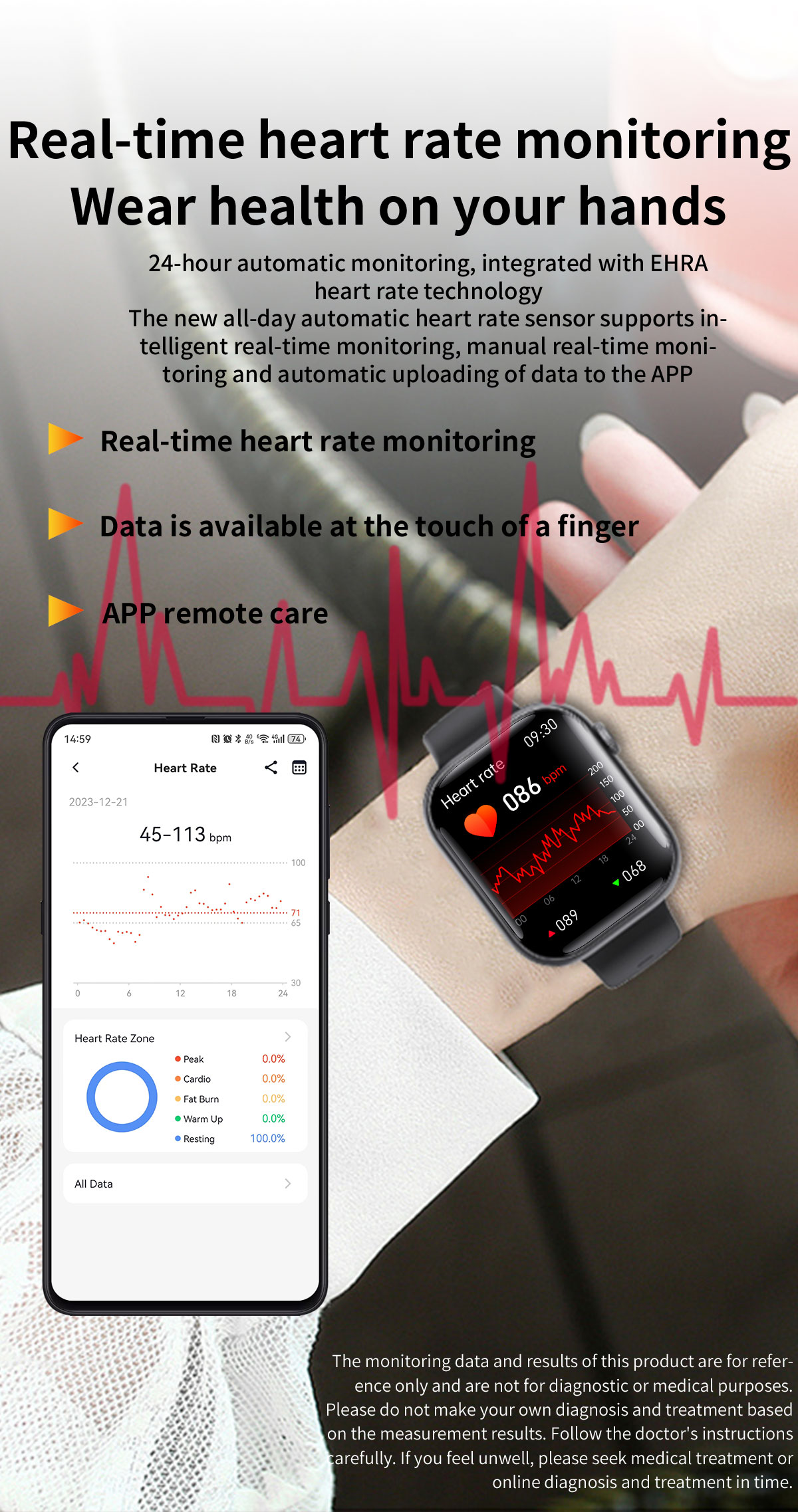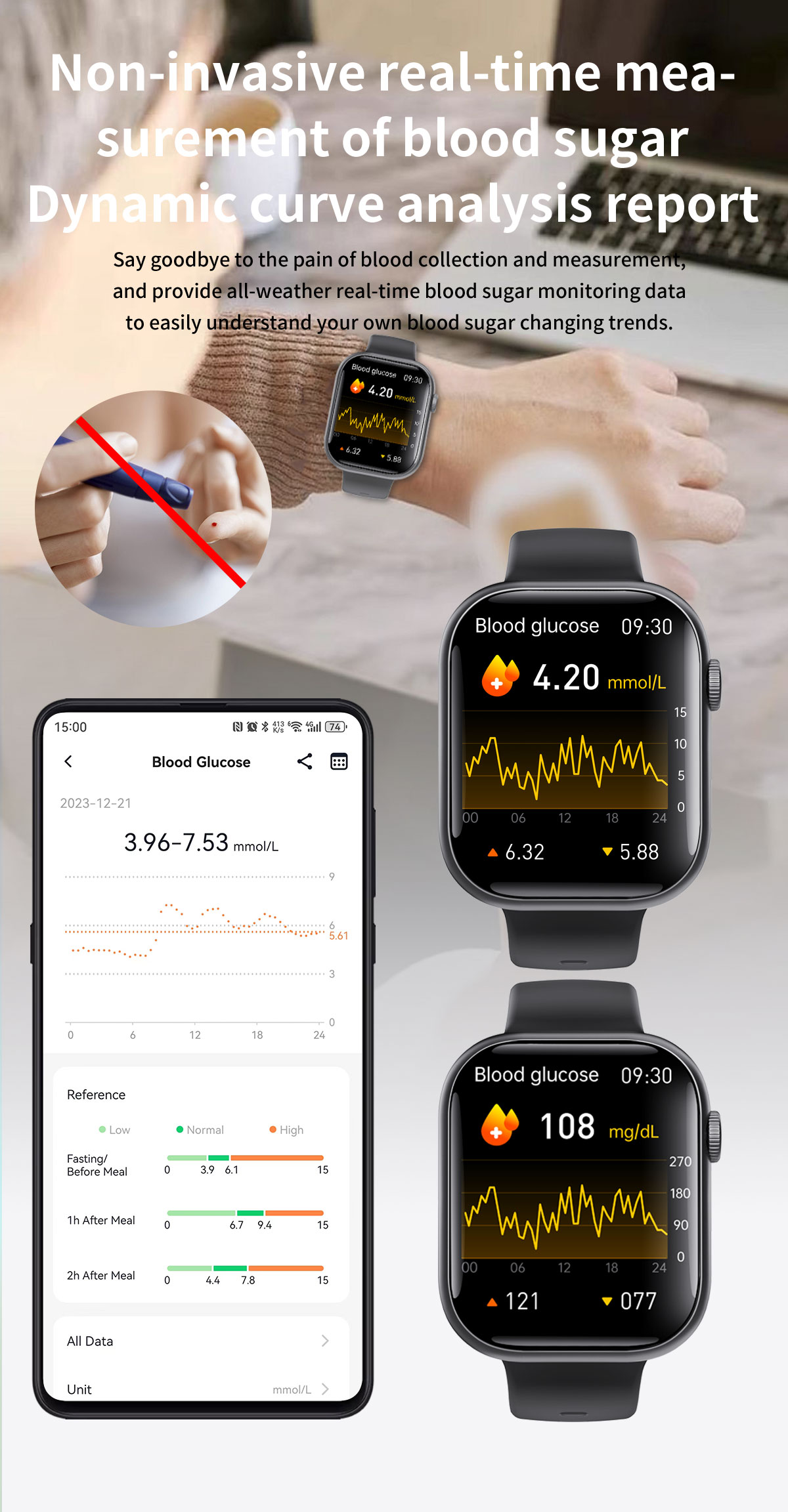 + Free Shipping2.1″ Large Super Rentina Screen | 5th. Gen Non-invasive Blood Sugar | Blood Components (uric acid, blood lipids) | Body Composition | SOS | HRV Report | Red Light Blood Oxygen | Scientific Sleep Monitoring | Pressure | MET | SOS | Voice Call | Sports Modes |